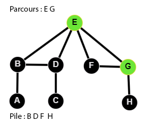 On va visiter le premier des voisins du sommet non traités, puis faire de même avec lui (visiter le premier de ses voisins non traités), etc.